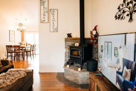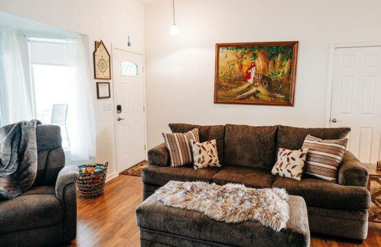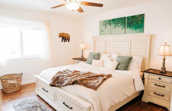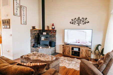 Enjoy coffee on the front porch looking out at the lake view or be enchanted by the playful artwork scattered throughout each room, book Dreamland for your home base to explore the local area or for a cozy “never leave the house” vacation. Dreamland sleeps six guests, has a fully stocked kitchen to prepare all your meals, two large bathrooms with all the amenities provided, hiking trails just outside the door and has ample boat parking.