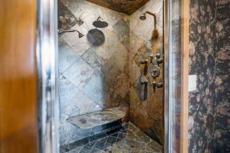 The showers are made with natural slate so please be sure to rinse any cleaners off completely to avoid discoloration or build up.