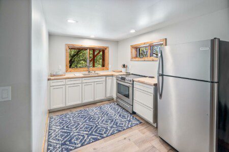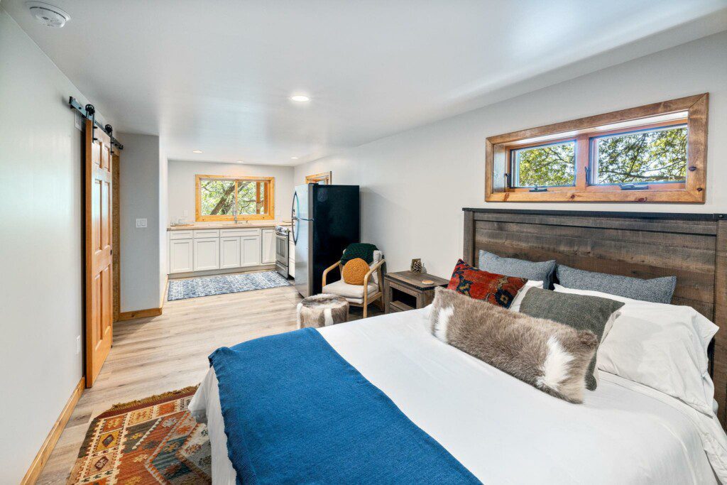 The basement room is available for an additional fee of $150 per night. It has another queen bedroom, full bathroom, and full kitchen. There is also a large open area perfect for yoga retreats or other times when large open space is needed.
